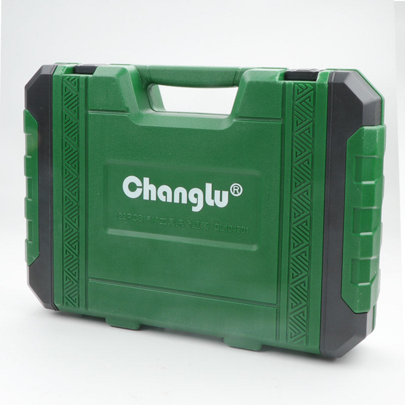 A complete 123+1 piece mechanic’s toolkit featuring chrome vanadium sockets, ratchets, extension bars, and more—perfect for automotive repairs and home maintenance.